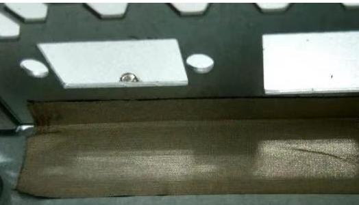 金屬擋片上下端進(jìn)行打磨并用導(dǎo)電布與機(jī)箱進(jìn)行搭接