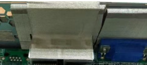VGA、USB以及網(wǎng)口與擋片接觸部位用導(dǎo)電布和導(dǎo)電泡棉進(jìn)行搭接