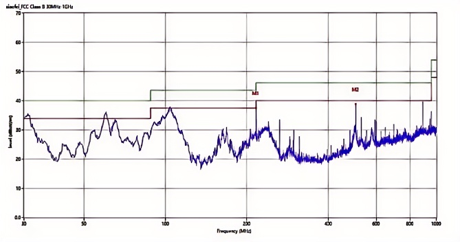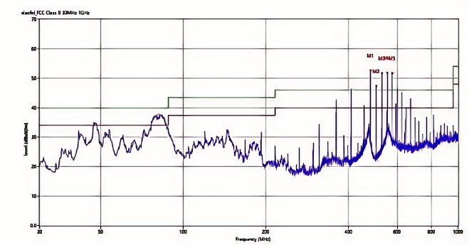 針對攝像頭的時(shí)鐘輻射問題,一般優(yōu)先考慮信號傳輸路徑的輻射問題,常見的整改手段是,優(yōu)化信號線的屏蔽性能,再考慮對信號做濾波處理。在本案例中,還出現(xiàn)了WIFI天線因?yàn)榫o挨著主控芯片導(dǎo)致輻射過高的問題,這提醒我們,在實(shí)際設(shè)計(jì)中,線束都應(yīng)該盡可能遠(yuǎn)離高速信號處理模塊以及強(qiáng)輻射源,以免出現(xiàn)噪聲耦合導(dǎo)致輻射過不了的情況。